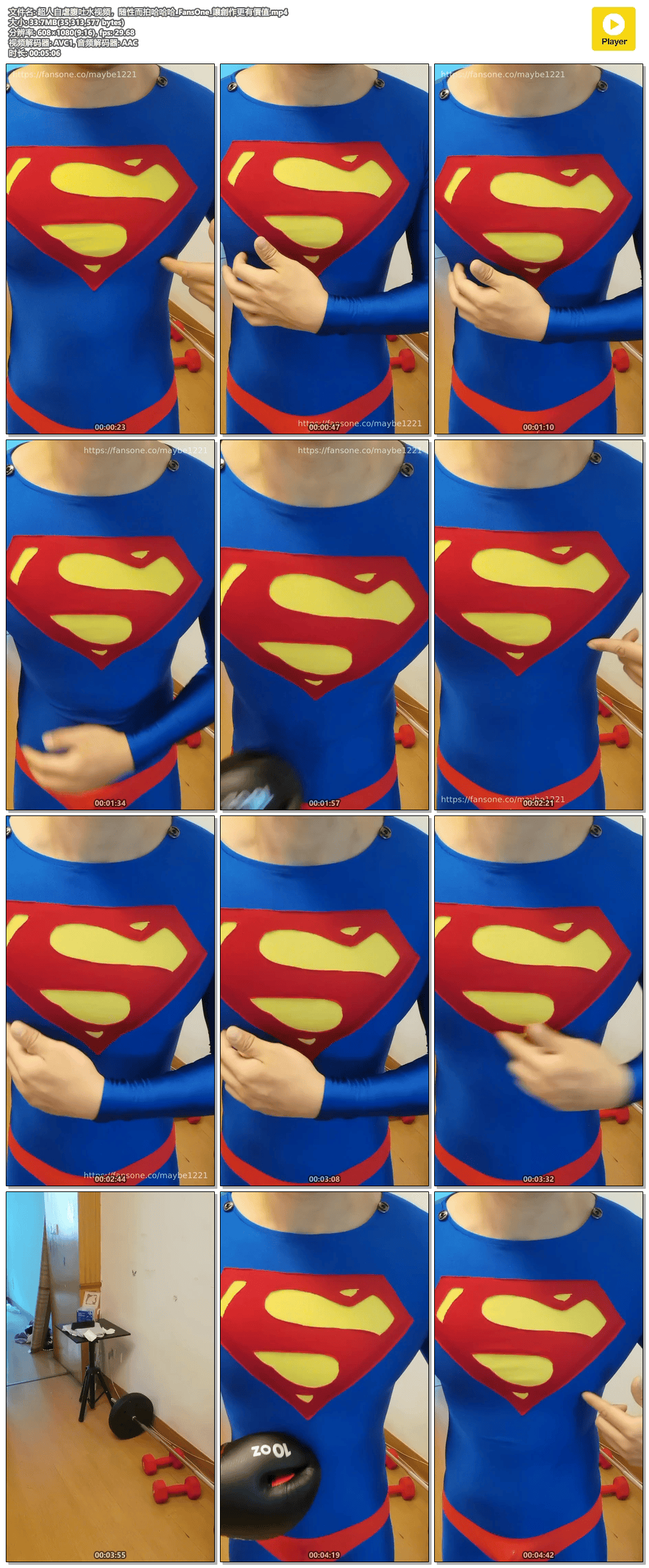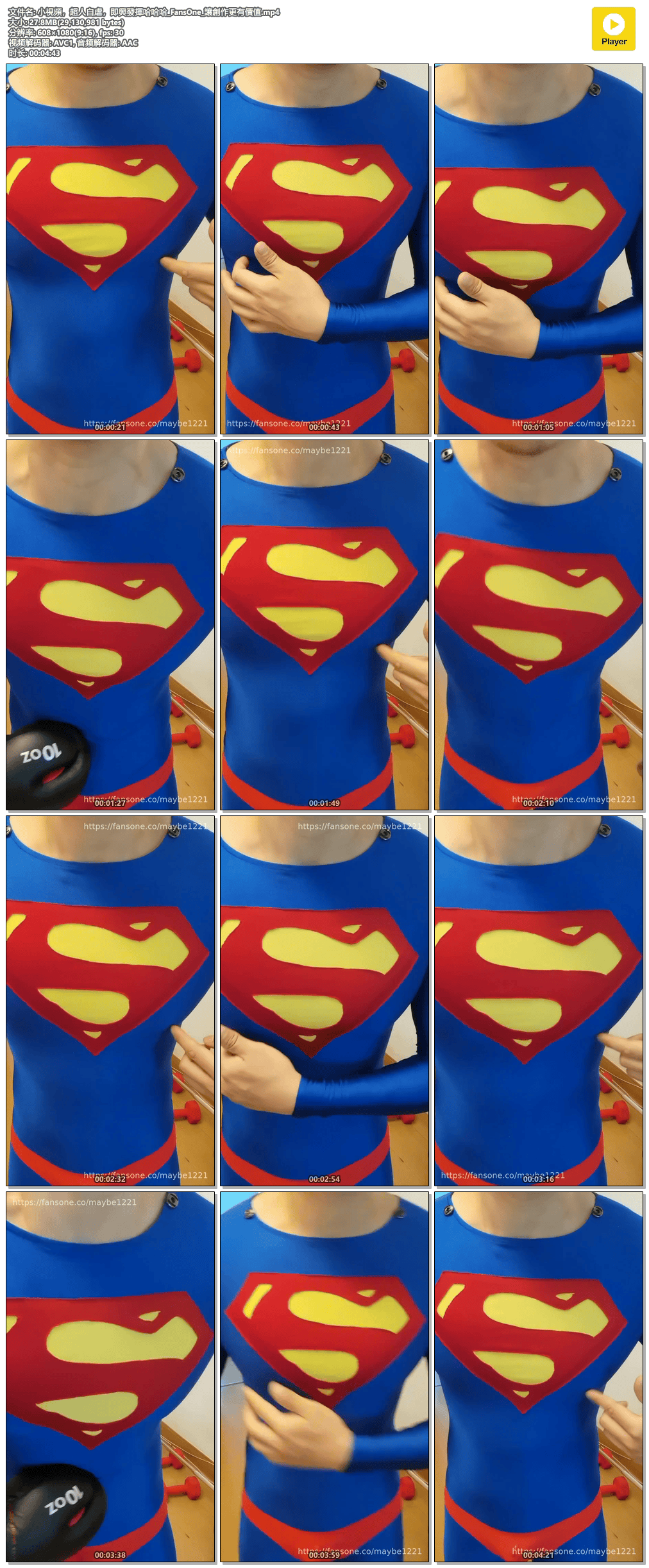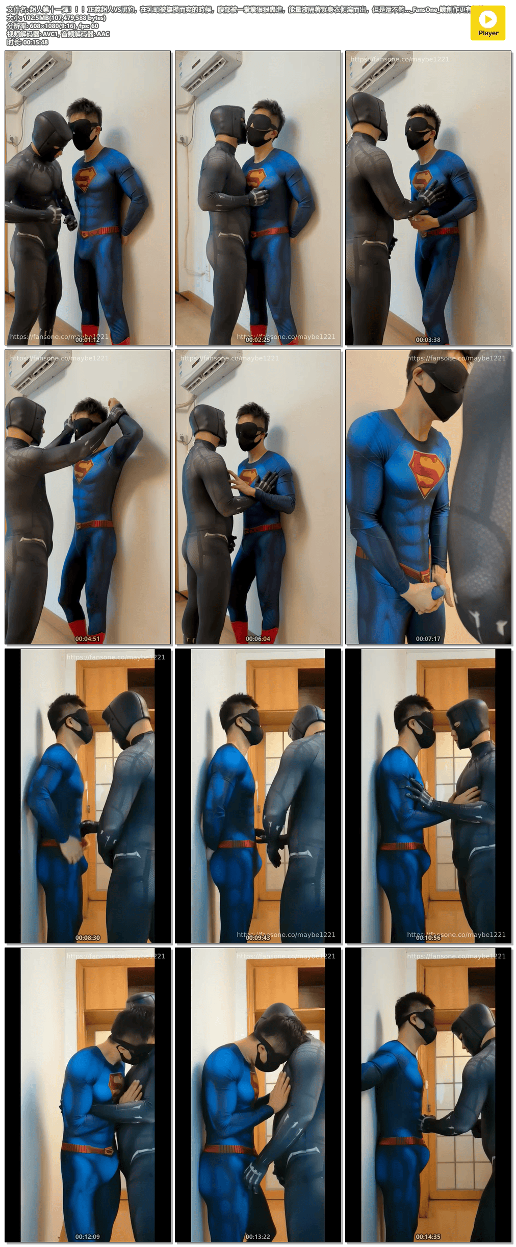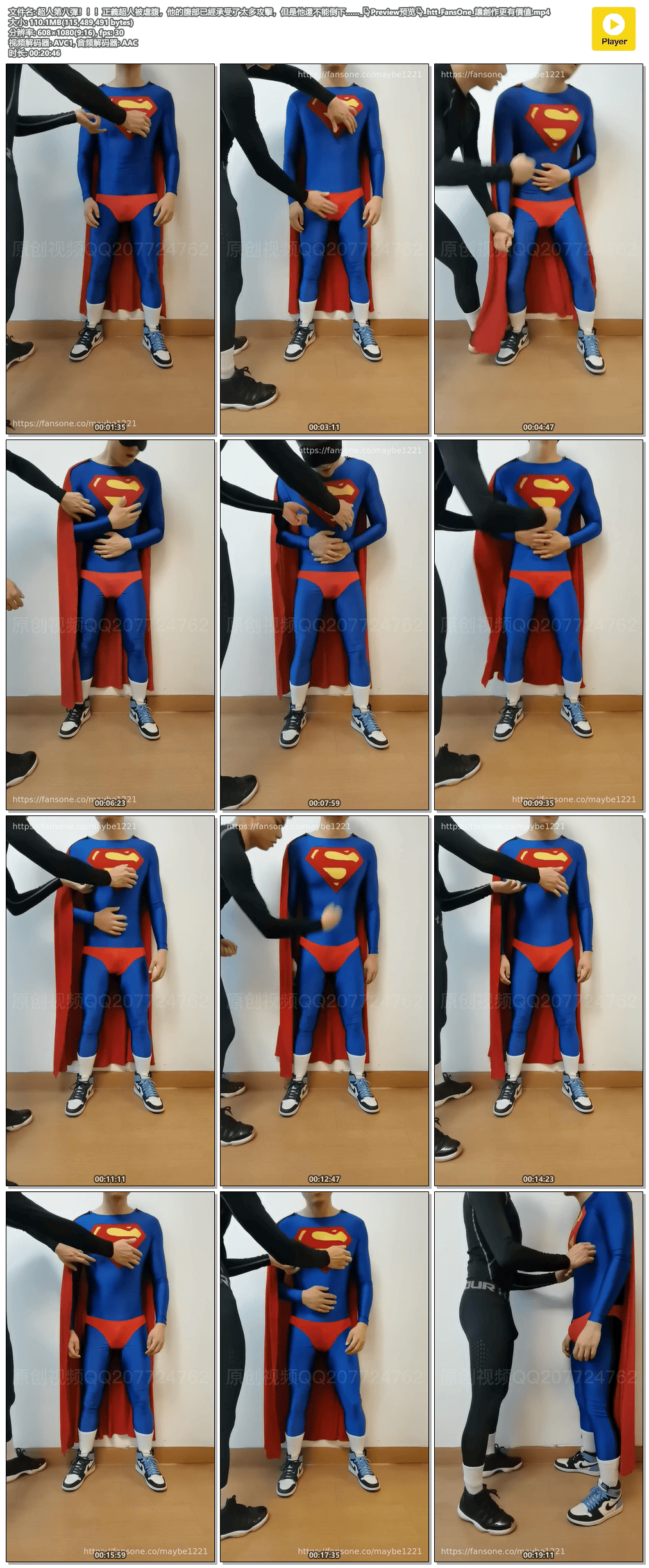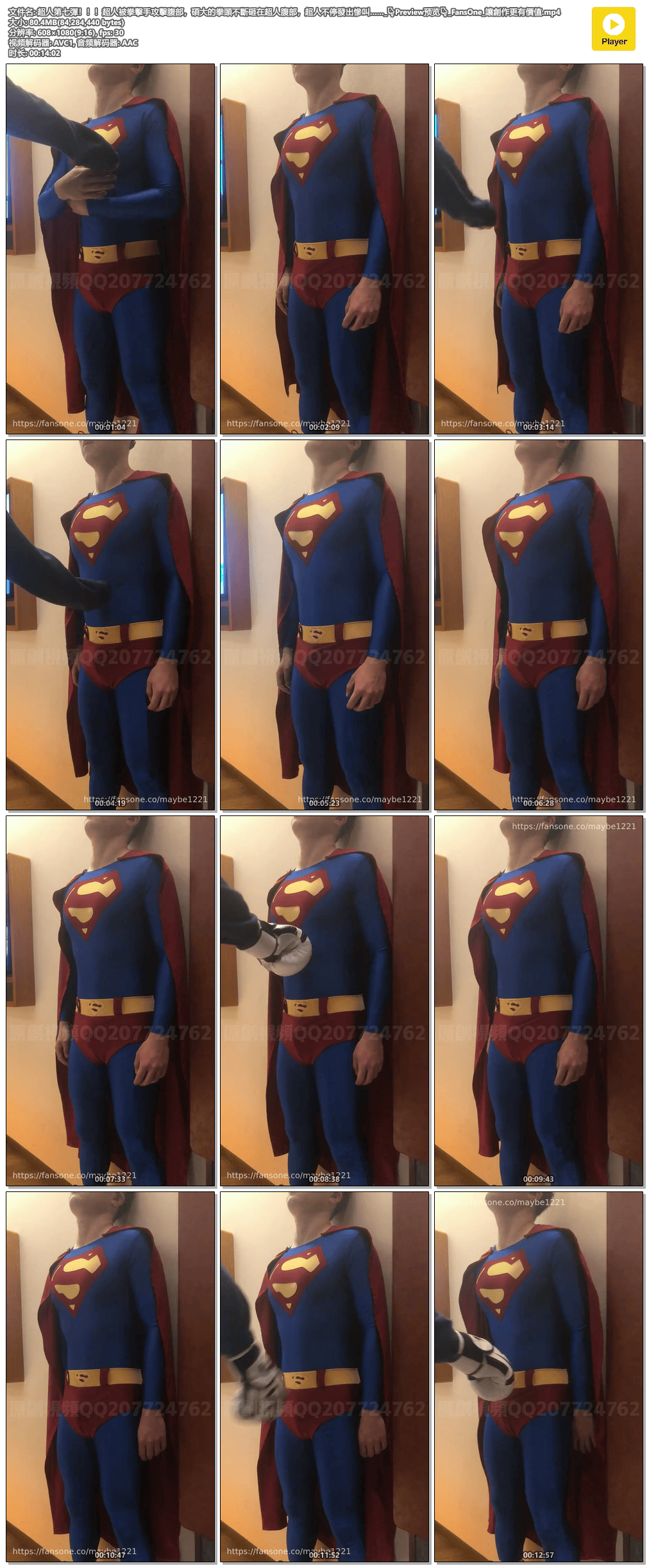超人第16彈上新!!!這次回歸初代超人,反派也很優質哦,肌肉不輸超人。超人的腹部不斷被拳頭轟入,最後上下失守,交出了能量_FansOne_讓創作更有價值.mp4.png
