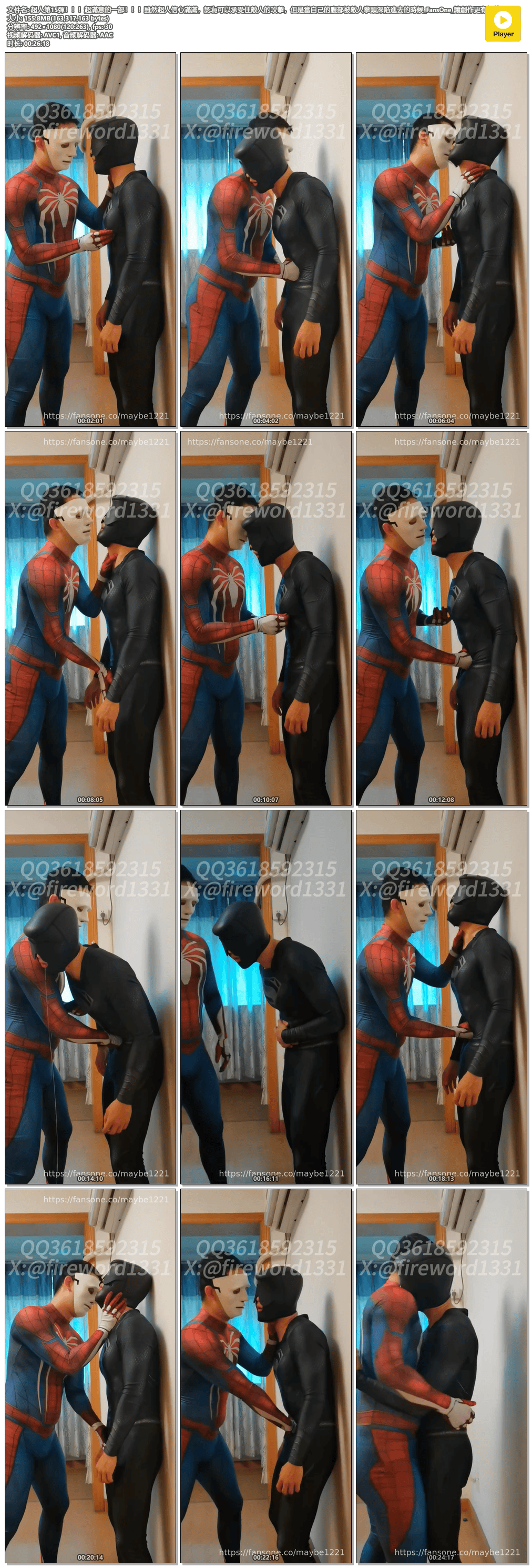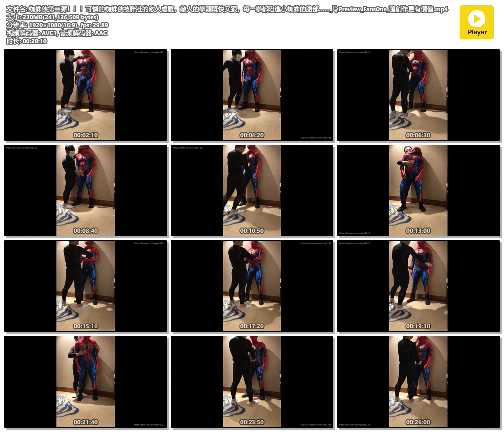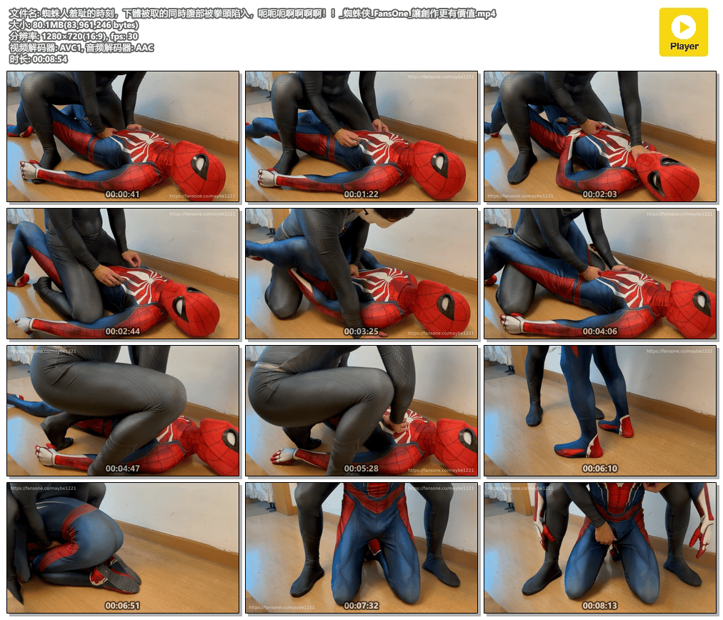 蜘蛛俠第二彈!!!可憐的蜘蛛俠被胖壯的敵人虐腹,敵人的拳頭既快又狠,每一拳都陷進小蜘蛛的腹部……_👇🏻Preview_FansOne_讓創作更有價值.mp4.png
